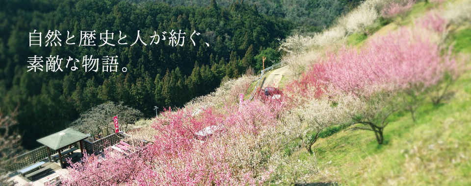 四季に花や実りを結ぶ田畑で立ち働く人や、森閑とした杜を背景に微笑む人、自然の恵みを活かした伝統の味や技を受け継ぐ人、下市町にはさまざまな人がいます。緑なす山々と清らかな水、水の流れと山の木々が育んだ豊かな歴史は、そこに人がいるから活き活きと息づき魅力的で、何気ない日常に寄り添う幸せとなっています。自然と歴史と人が紡ぐ素敵な物語に、めぐり逢ってみませんか。